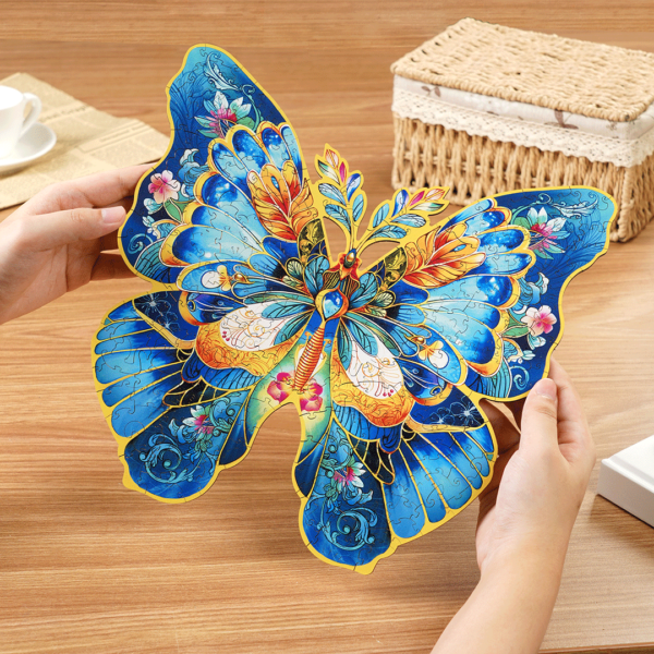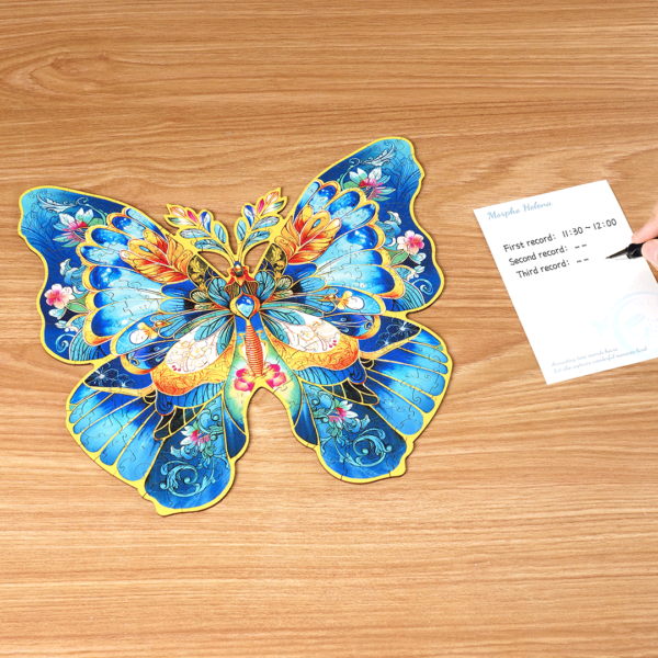 Morpho Helena is a wooden jigsaw puzzle made up of particular shaped pieces. Featuring rich colors and a characteristic shape of the Morpho Helena, this puzzle provides visual enjoyment and captivates puzzle enthusiasts. The challenging process of puzzle solving will be a brain training. Besides, it can be a nice gift or you can hang it on the wall as a home decor after completion.